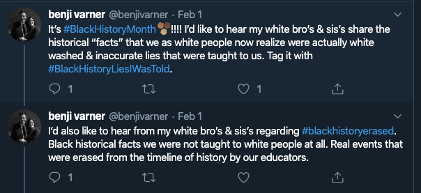 What are some Black History Lies you were told, or Black History Erased? Share them under #blackhistoryliesiwastold and #blackhistoryerased